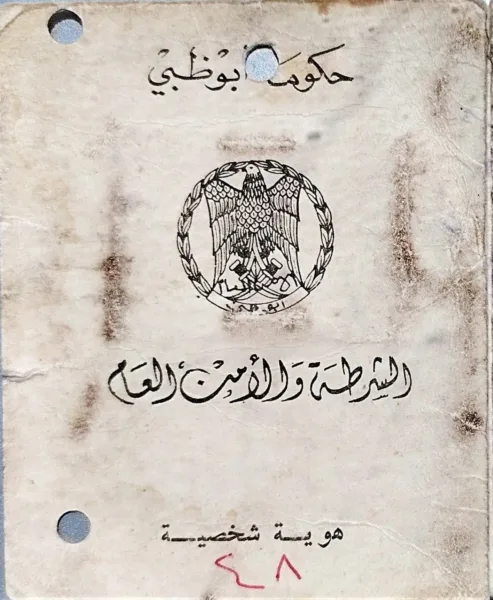 بطاقة موظف لسيف بن سلطان عوض الصيري، مدير قصر الذيد في أبوظبي عام 1972