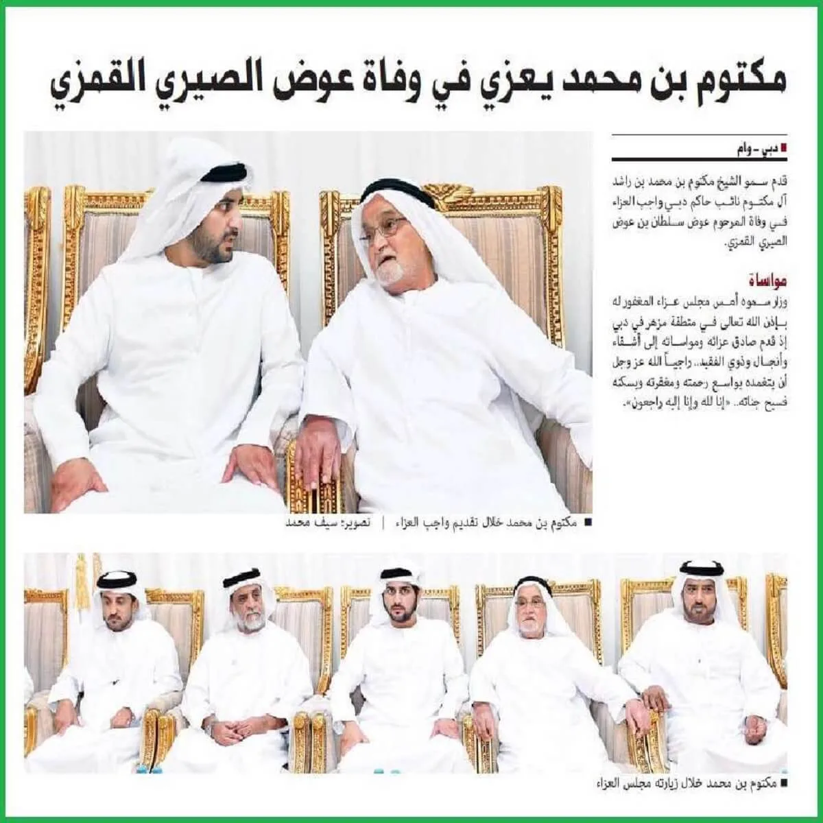 في مقال مؤثر نُشر في صحيفة الخليج بتاريخ 4 أبريل 2022، تم تسليط الضوء على شخصية مطر بن سلطان بن عوض الصيري القمزي، الذي غادر هذه الدنيا تاركًا خلفه أثرًا خالدًا في قلوب من عرفوه.
